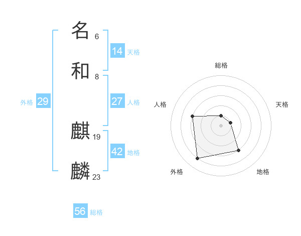 名和 麒麟さんを姓名の画数から五運を鑑定
