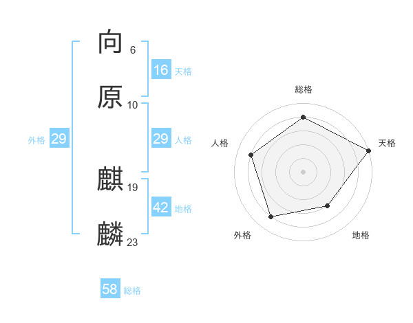 向原 麒麟さんの総格は58画の4点!