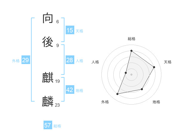 向後 麒麟さんの総格は57画の4点!