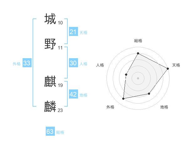 城野 麒麟さんの総格は63画の4点!
