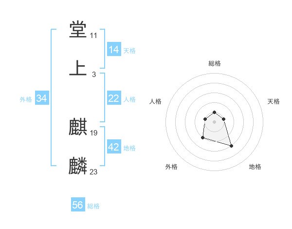 堂上 麒麟さんの総格は56画の1点!