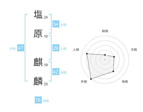 塩原 麒麟さんを姓名の画数から五運を鑑定