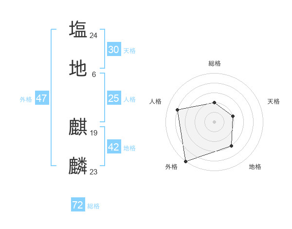塩地 麒麟さんの総格は72画の2点!