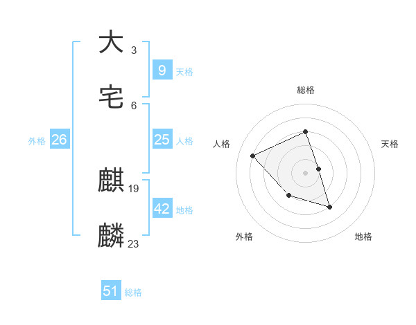 大宅 麒麟さんの総格は51画の3点!