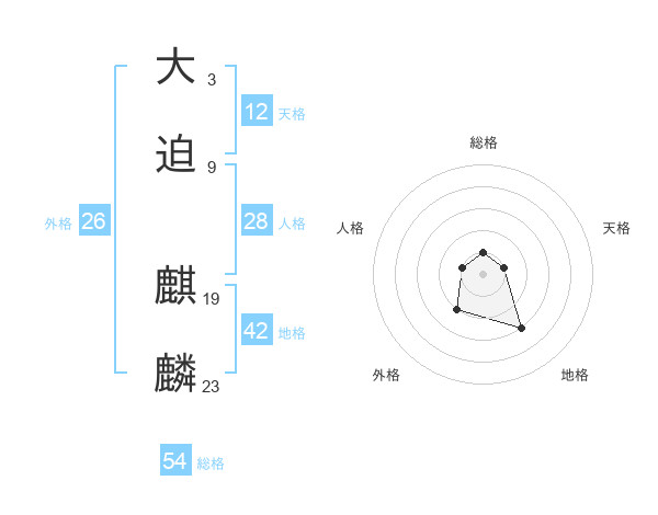 大迫 麒麟さんを姓名の画数から五運を鑑定