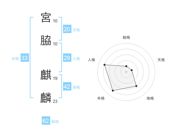 宮脇 麒麟さんの総格は62画の1点!