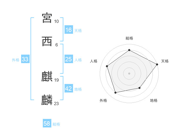 宮西 麒麟さんの総格は58画の4点!