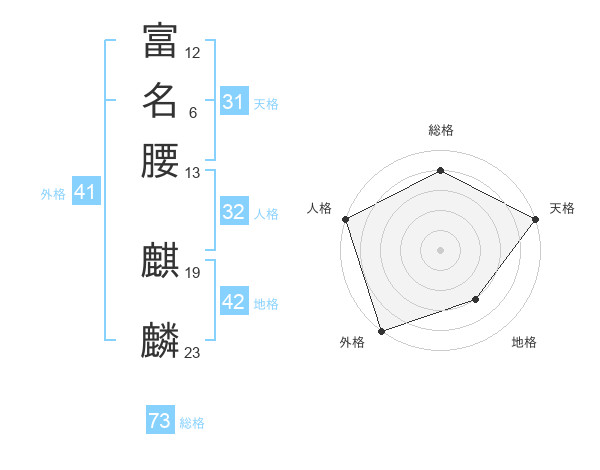 富名腰 麒麟さんの総格は73画の4点!
