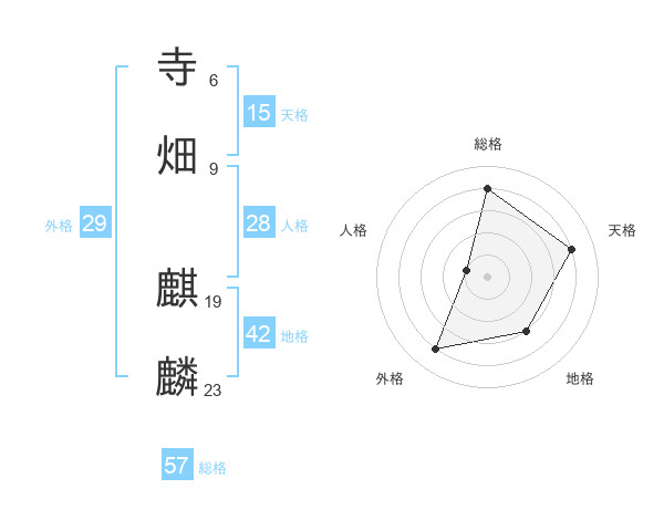 寺畑 麒麟さんの総格は57画の4点!