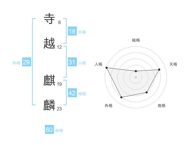 寺越 麒麟さんを姓名の画数から五運を鑑定