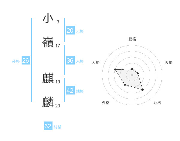 小嶺 麒麟さんを姓名の画数から五運を鑑定