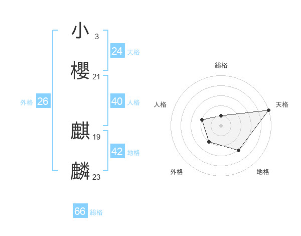 小櫻 麒麟さんの総格は66画の1点!