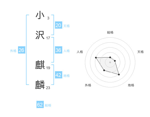 小沢 麒麟さんの天格は20画の1点!