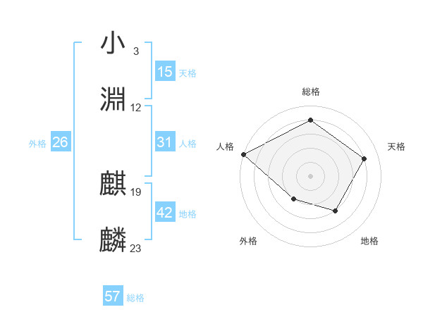 小淵 麒麟さんの総格は57画の4点!