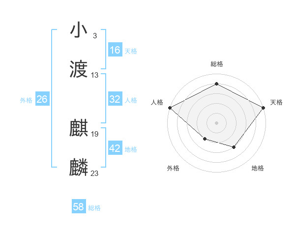 小渡 麒麟さんの総格は58画の4点!