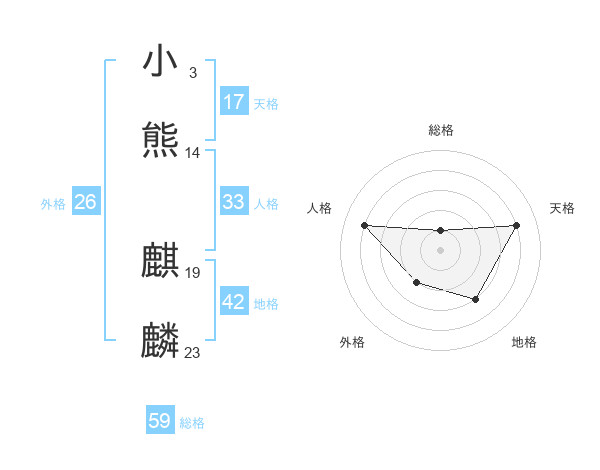 小熊 麒麟さんの総格は59画の1点!