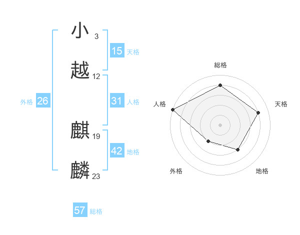小越 麒麟さんの総格は57画の4点!