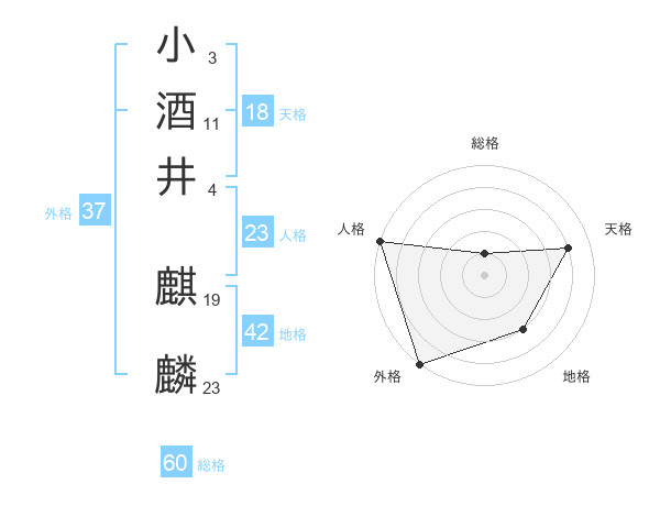 小酒井 麒麟さんの総格は60画の1点!