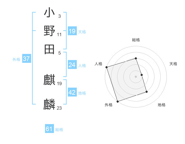 小野田 麒麟さんを姓名の画数から五運を鑑定