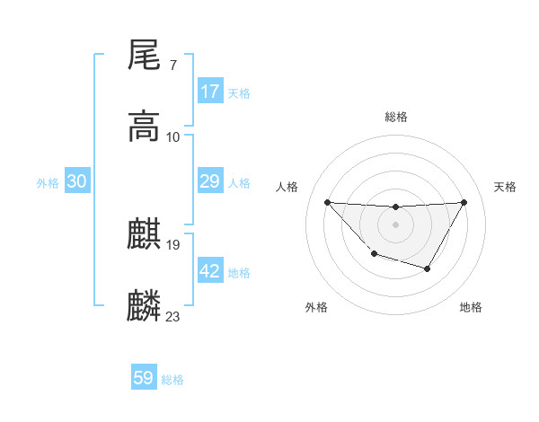 尾高 麒麟さんの総格は59画の1点!