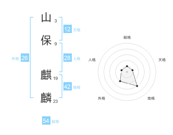 山保 麒麟さんの総格は54画の1点!