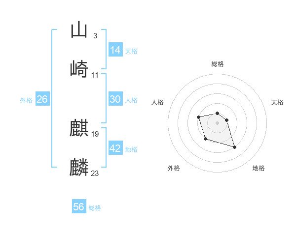 山崎 麒麟さんを姓名の画数から五運を鑑定