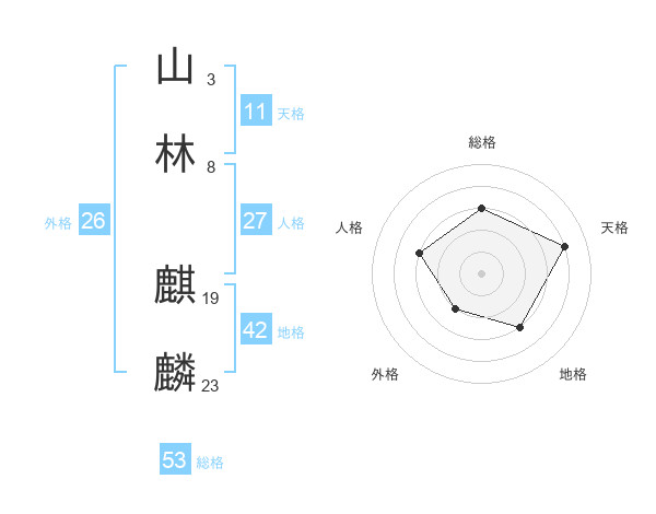 山林 麒麟さんの総格は53画の3点!