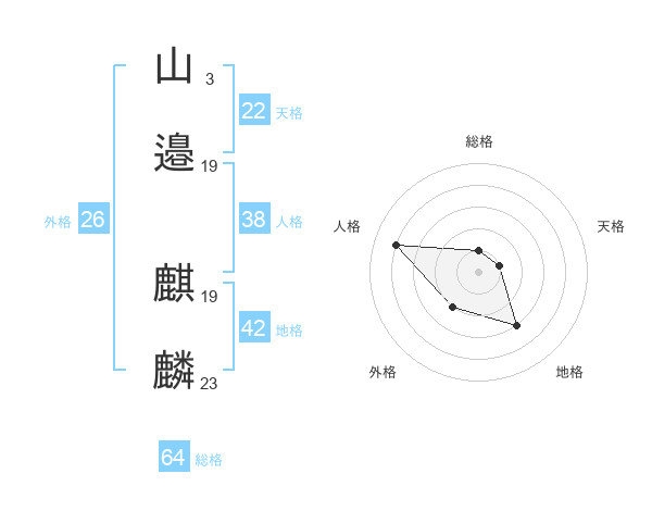 山邉 麒麟さんの総格は64画の1点!