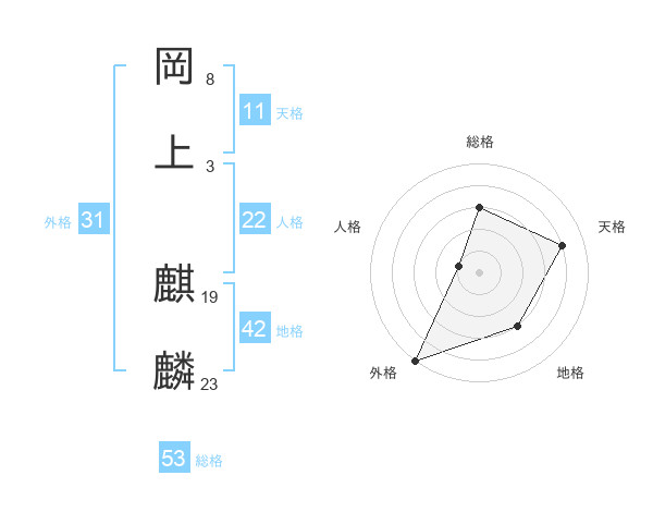 岡上 麒麟さんの総格は53画の3点