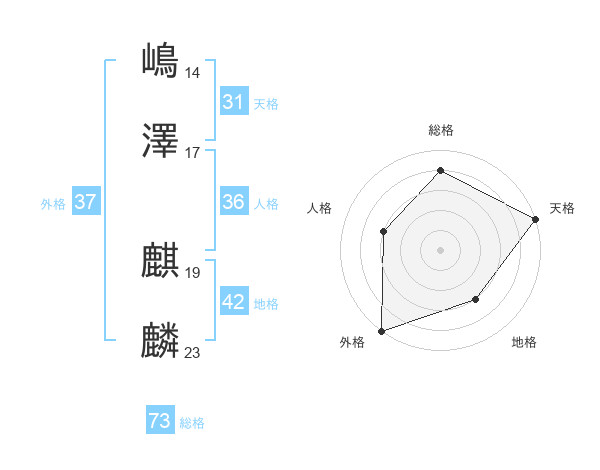 嶋澤 麒麟さんの総格は73画の4点!