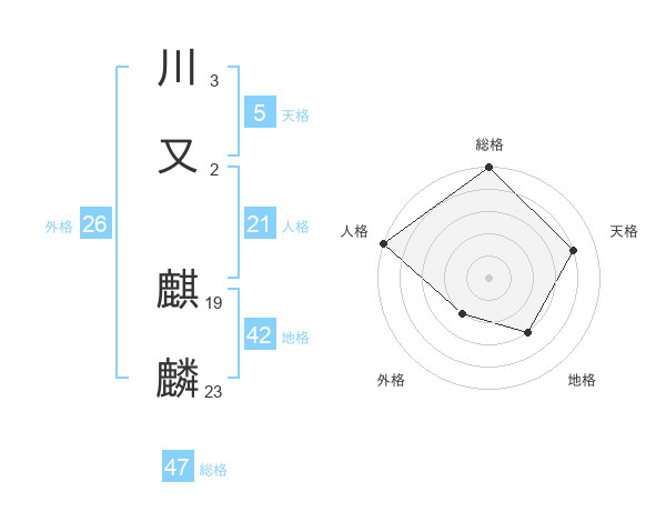 川又 麒麟さんの総格は47画の5点!