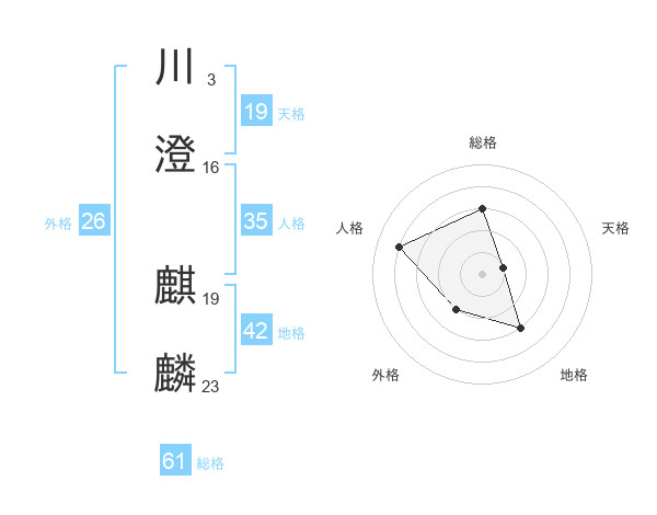 川澄 麒麟さんの総格は61画の3点!