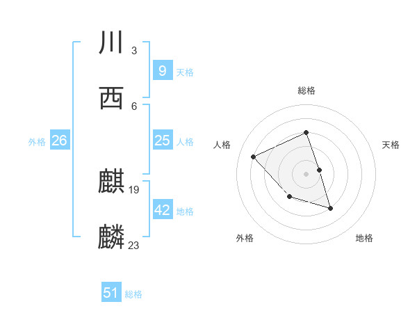 川西 麒麟さんを姓名の画数から五運を鑑定