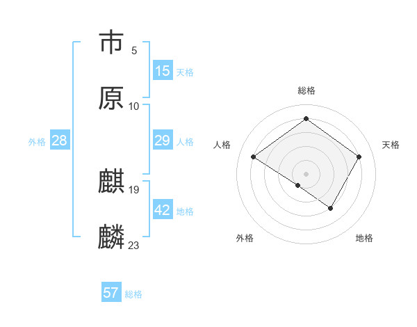 市原 麒麟さんの総格は57画の4点!