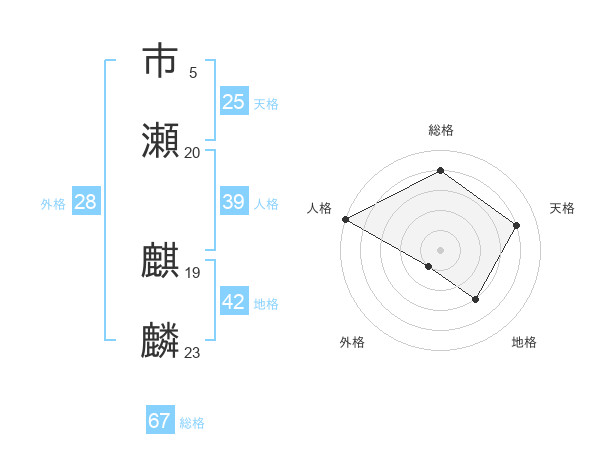 市瀬 麒麟さんを姓名の画数から五運を鑑定