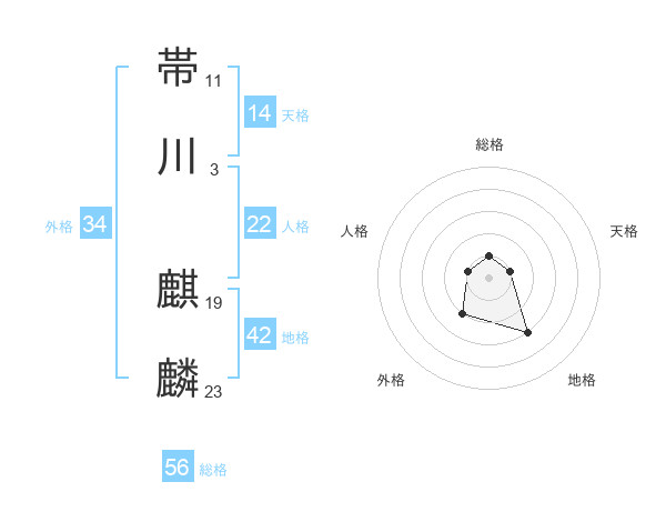 帯川 麒麟さんの総格は56画の1点!
