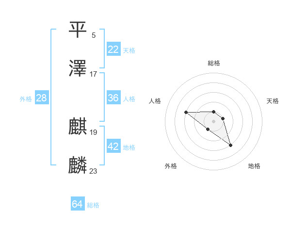 平澤 麒麟さんの総格は64画の1点!