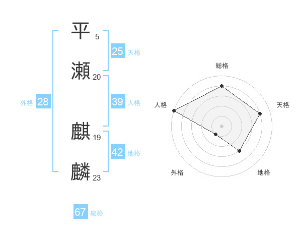 平瀬 麒麟さんの総格は67画の4点!