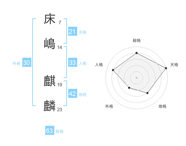 床嶋 麒麟さんの総格は63画の4点!