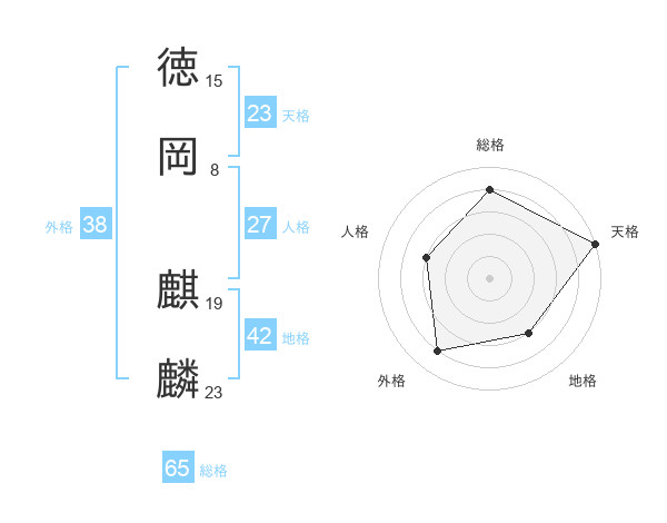 徳岡 麒麟さんの総格は65画の4点!