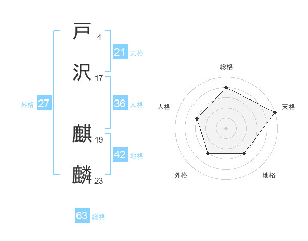 戸沢 麒麟さんの総格は63画の4点!