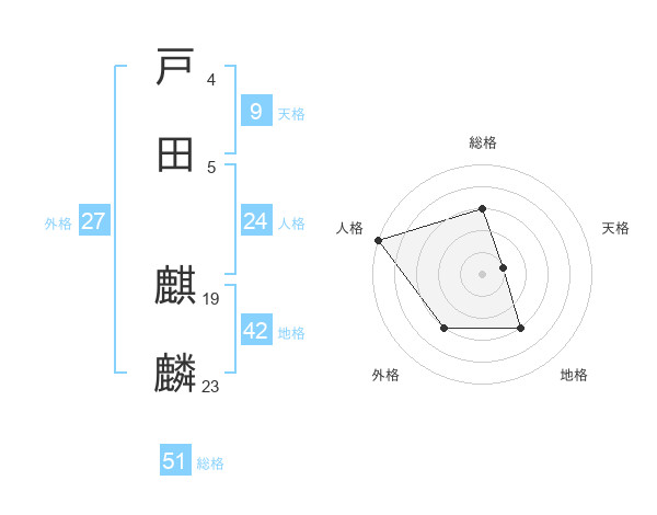戸田 麒麟さんの総格は51画の3点!