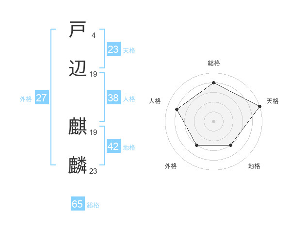 戸辺 麒麟さんを姓名の画数から五運を鑑定