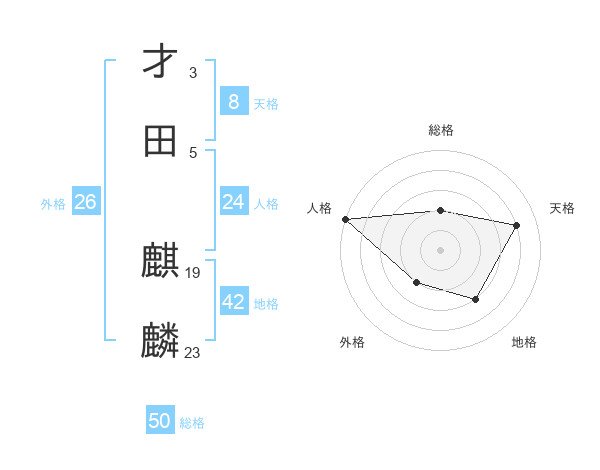 才田 麒麟さんの天格は8画の4点!