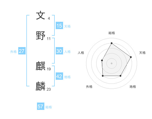 文野 麒麟さんを姓名の画数から五運を鑑定