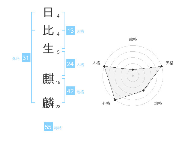 日比生 麒麟さんの総格は55画の1点!