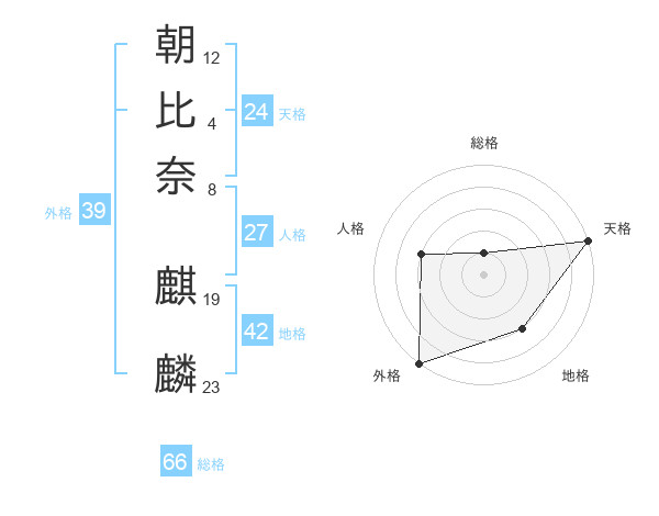 朝比奈 麒麟さんを姓名の画数から五運を鑑定