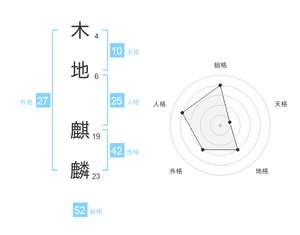 木地 麒麟さんの総格は52画の4点!