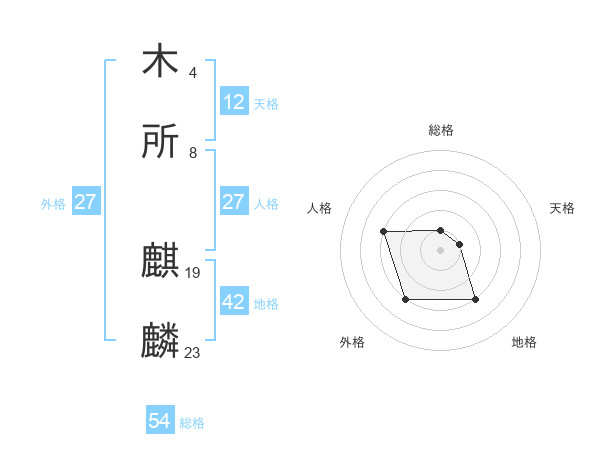 木所 麒麟さんの総格は54画の1点!