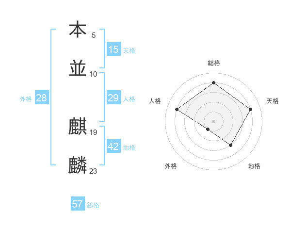 本並 麒麟さんの総格は57画の4点!